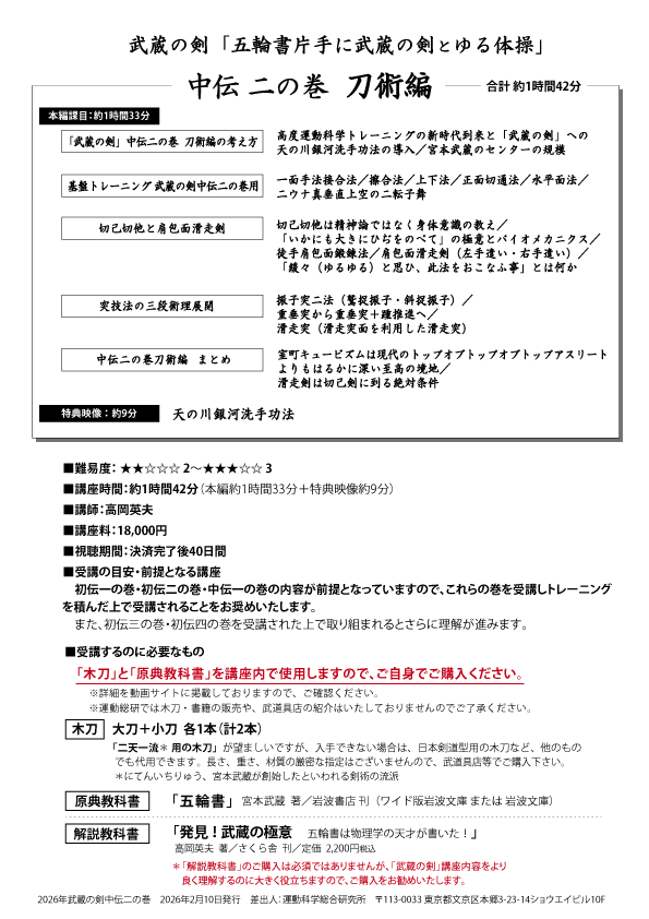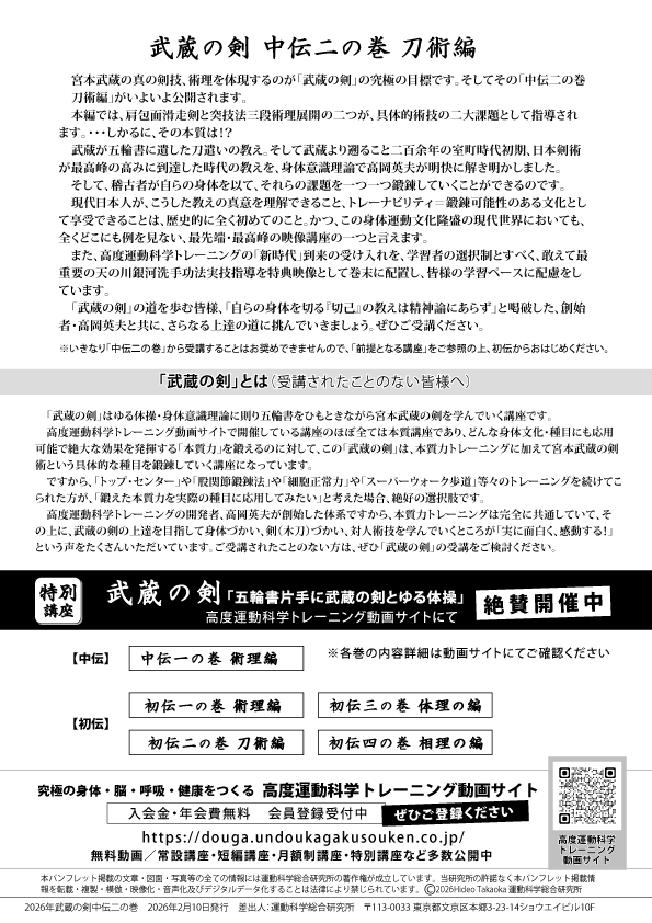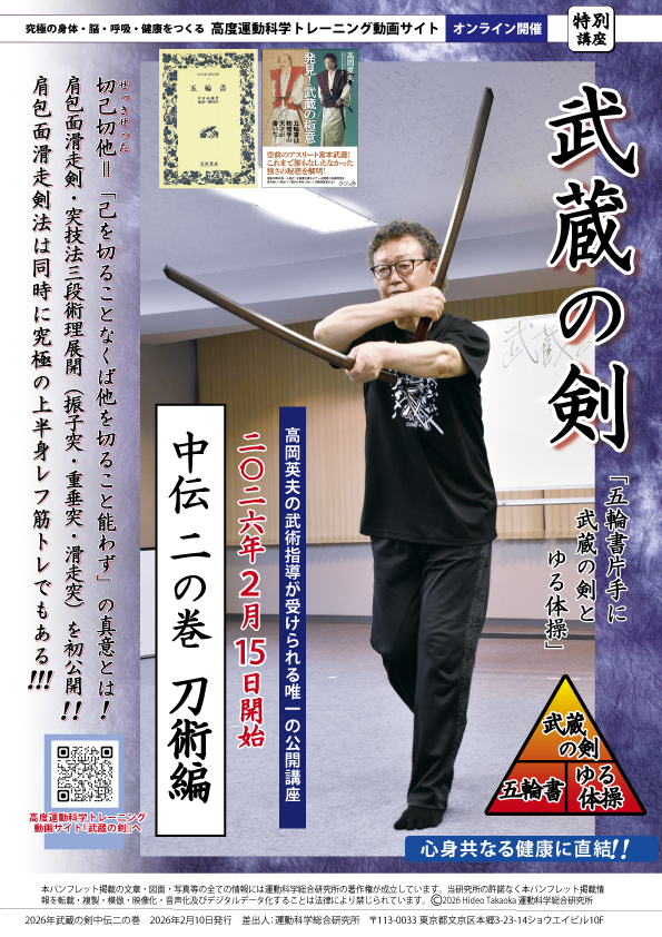 「武蔵の剣」の道を歩む皆様、「自らの身体を切る『切己』の教えは精神論にあらず」と喝破した、創始者・高岡英夫と共に、さらなる上達の道に挑んでいきましょう。ぜひご受講ください。