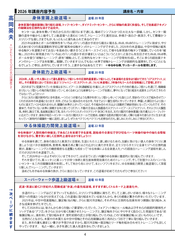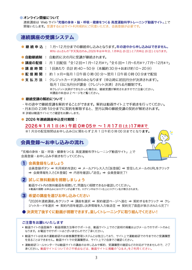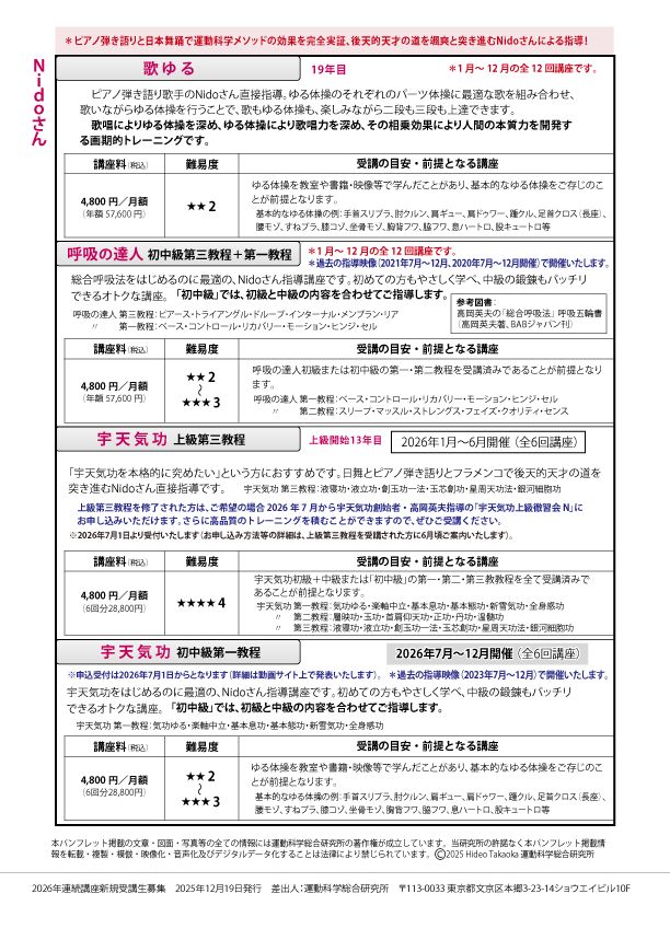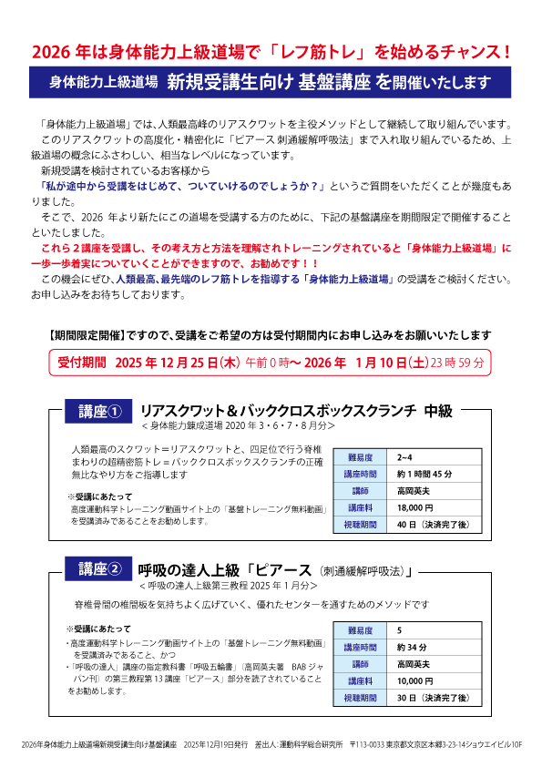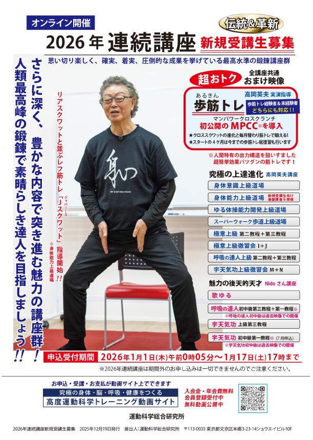 連続講座の詳細等は、「究極の身体・脳・呼吸・健康をつくる 高度運動科学トレーニング動画サイト」にてご覧下さい。