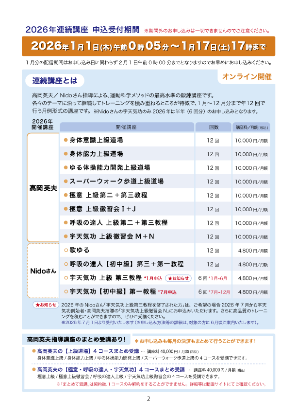2026年連続講座 受付期間【オンライン開催】