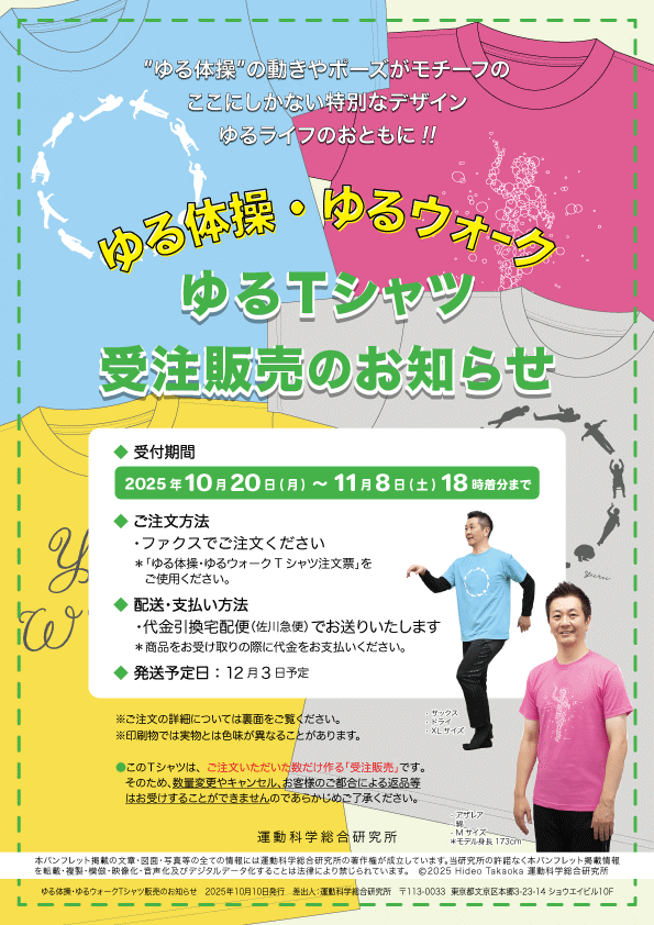 ホーム > ゆる体操・ゆるウォークTシャツ 受注販売のお知らせ